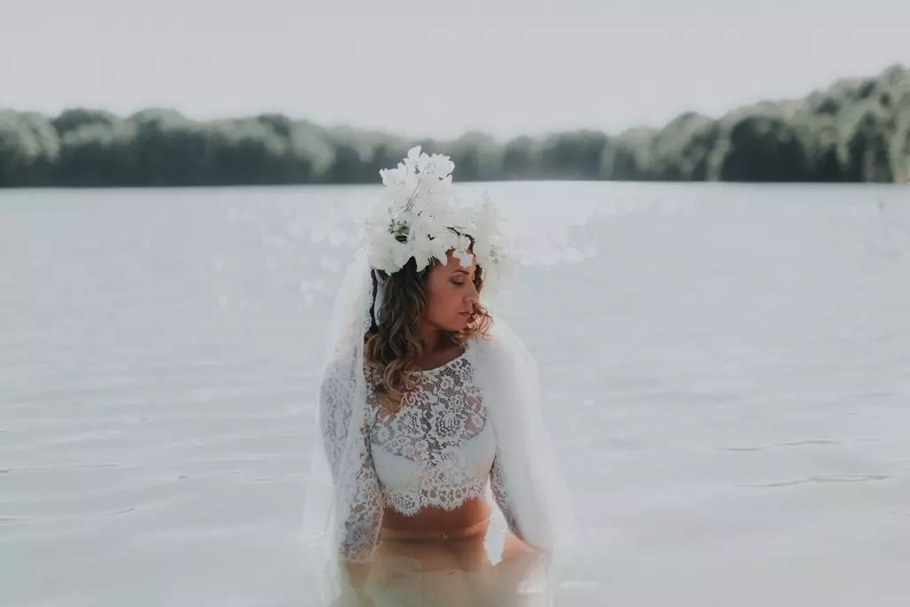 – Dans des décors grandioses de nature : Un lieu qui j’adore par dessus tout dans le coin : les mines d’Abbaretz : ici, la mariée baigne dans son lac puis surplombe ses mines pour donner une dimension grandiose aux photographies.