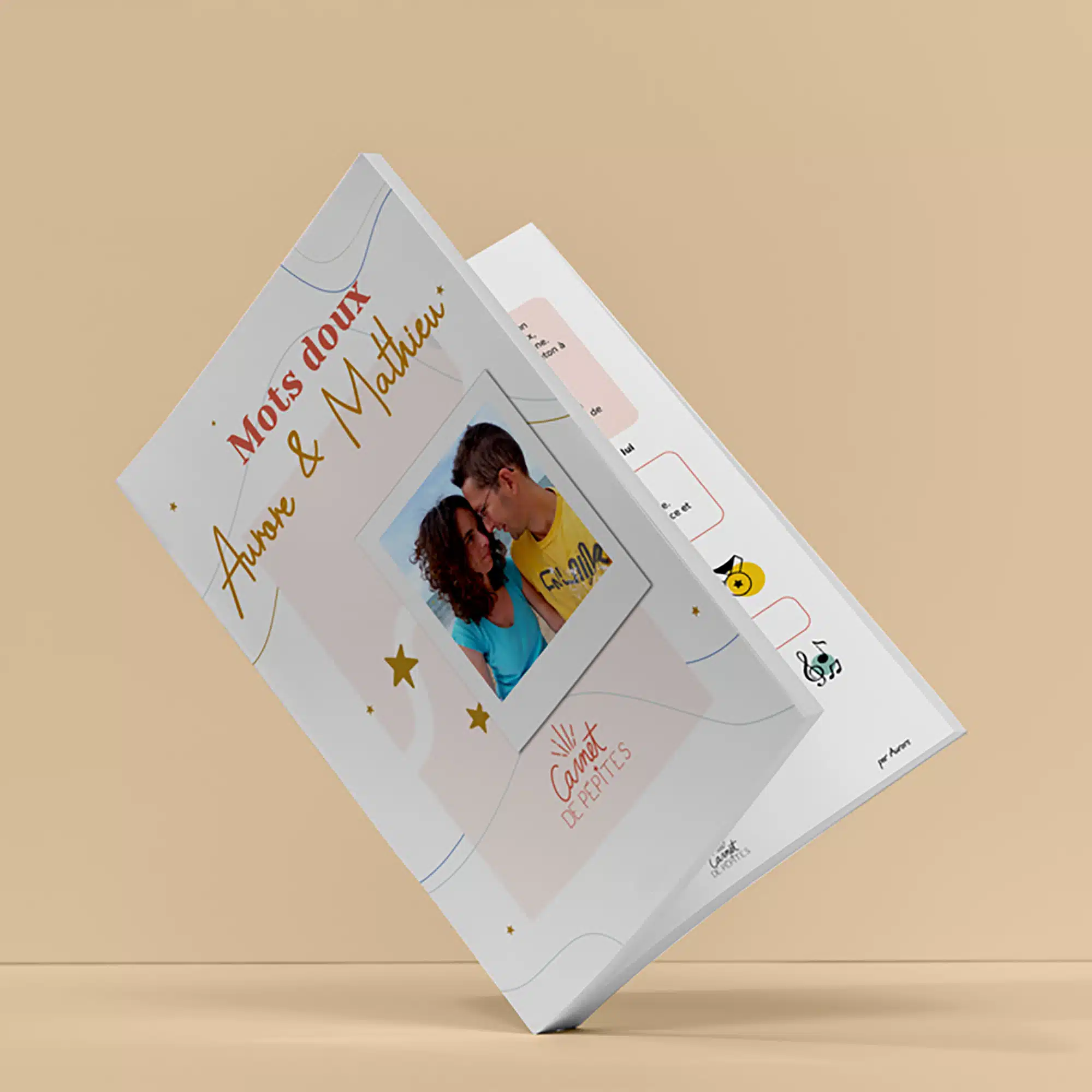 Un Carnet de Pépites, c’est un livre participatif réalisé par les invités avec leurs souvenirs, mots doux, réponses insolites et photos collectés pour faire plaisir aux mariés. À l’initiative des mariés ou d’un.e des convives, chacun des proches est invité à répondre à un questionnaire en ligne pour célébrer les mariés. Des questions adaptées sont proposées sous forme de portrait chinois ou plus profondes pour aider à se souvenir de moments marquants afin de collecter les plus belles pépites et souvenirs en famille ou entre amis. Un condensé d’amour !