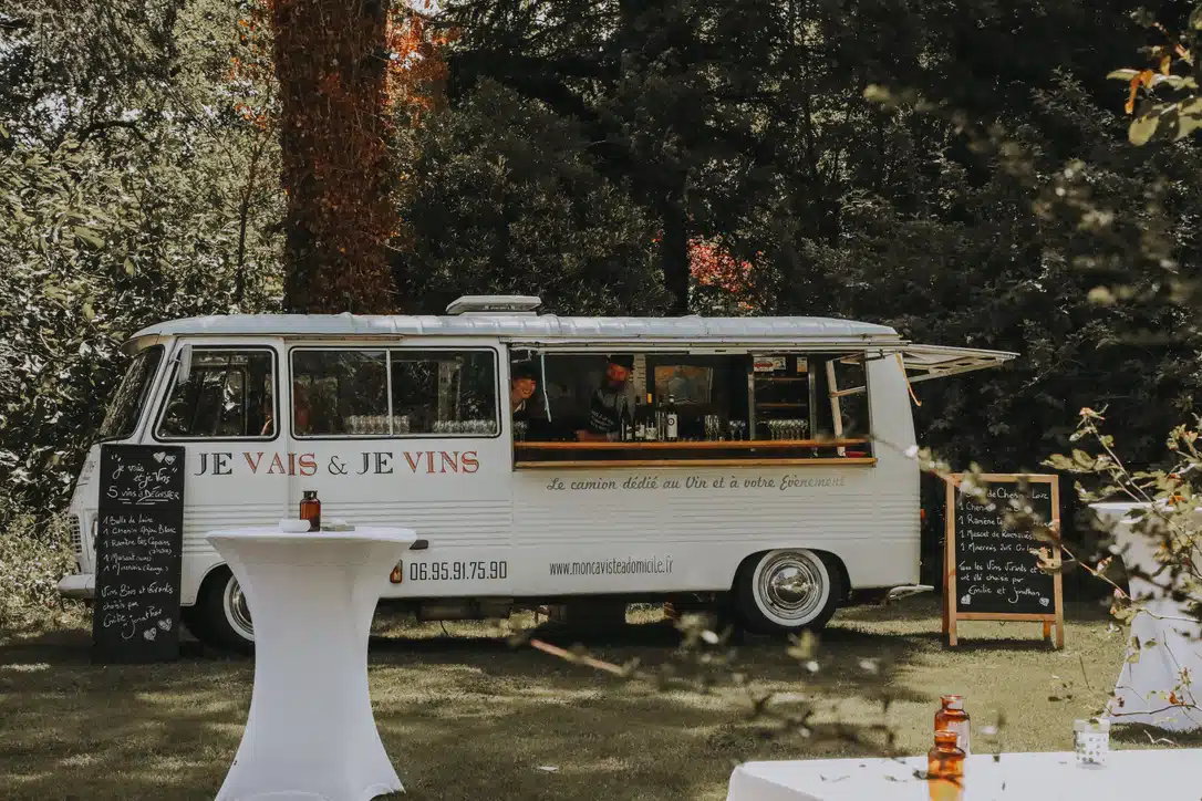 Votre Caviste à domicile à bord de son Winetruck rétro de 1979 est l’allié incontournable de tout amateur de vin. Avec “Je Vais & Je Vins”, animez votre mariage et comblez vos invités avec ce bar à vin nomade privatisé.