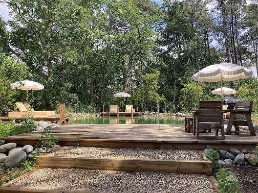 Vous pourrez profiter de sa “Place du Village”, avec sa piscine naturelle de 120 m², son terrain de pétanque, sa toile nomade avec ses tables et chaises, pour une capacité de 50 personnes ; ainsi que son brasero de cuisson pour le traiteur.