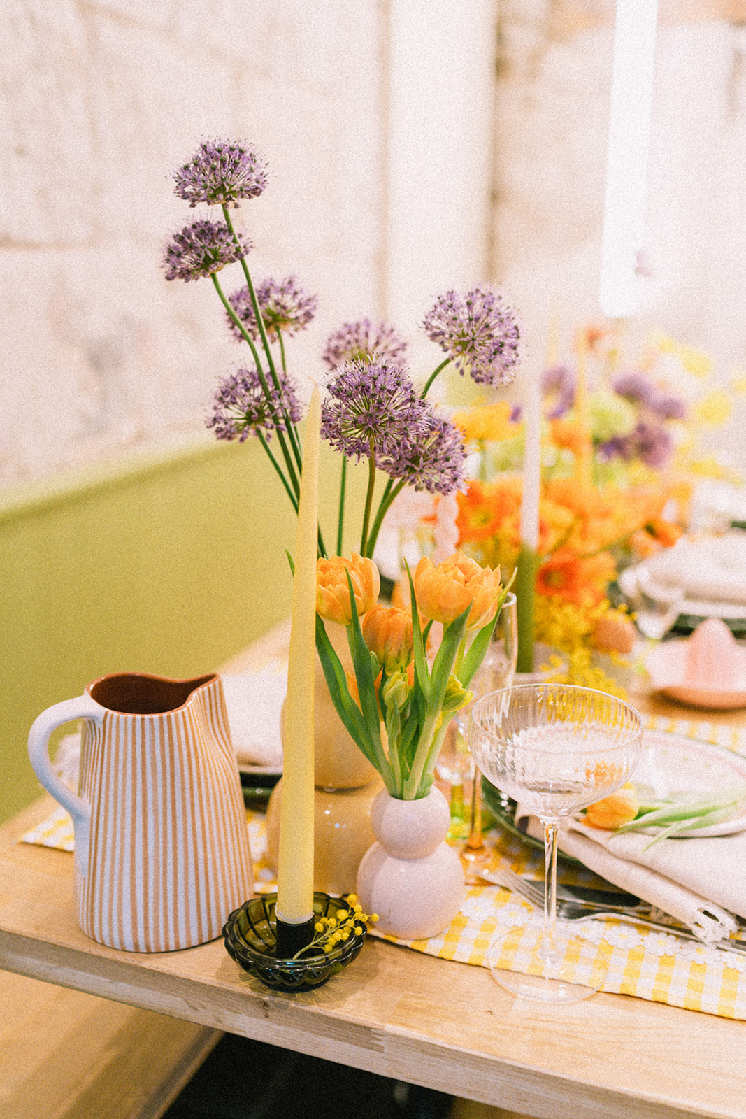 Et tant qu’à faire, autant y aller avec des couleurs “mal aimées” dans l’univers du mariage : le jaune, le violet, le vert anis..