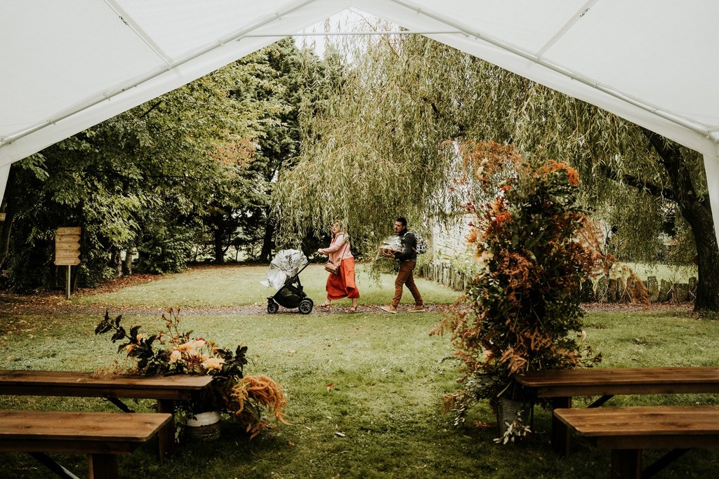 Par exemple pour nous : Nous nous sommes mariés le jour d’une tempête. La veille, il y avait un soleil magnifique, le lendemain également. Nous avions prévu la cérémonie laïque sous un barnum au cas où, mais celui-ci n’a pas tenu face à la tempête. Fort heureusement, notre équipe de choc s’est éclipsée lors du repas et a déménagé l’ensemble du décor de la cérémonie, à l’abris. Ils ont sauvé toutes les fleurs. Nous avons fait la cérémonie dans un endroit beaucoup plus sombre et petit. Elle n’en a pas été moins belle, loin de là.