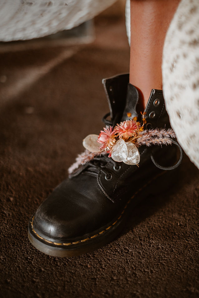 Je connaissais Marie d’Atelier Aimer, je savais que nos univers se rejoignaient. Le projet lui a plu et son inspiration a été au delà de mes envies initiales. Les fleurs sur ce shooting sont les bijoux de la mariée, une parure moderne et poétique et en même temps pansent nos plaies, métaphore des difficultés de cette périodes…