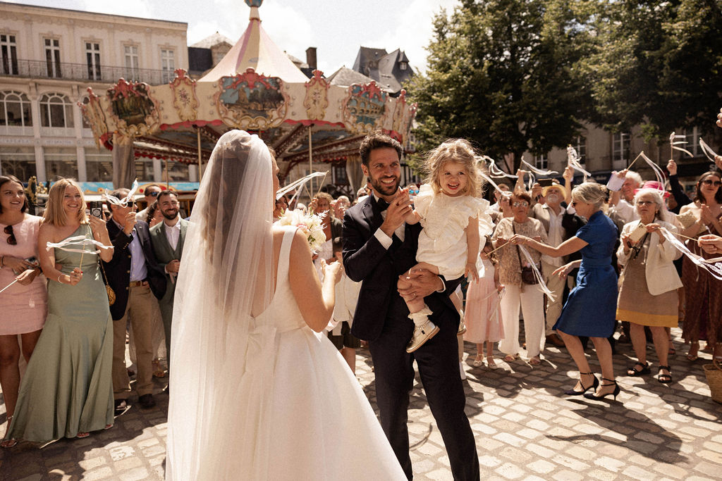 Pauline : Difficile de n’en citer qu’un ! Je savais que j’allais retrouver une équipe de prestataires en or, et chacun a dépassé les attentes. Paillettes et Chantilly ont orchestré la journée avec une organisation fluide et bienveillante, Alizée, de Imera papeterie a signé une papeterie absolument superbe, Maud (Make up by Mauda) a fait un travail remarquable côté coiffure et maquillage, et puis il y avait aussi Mathieu (Marions nous dans les bois), vidéaste et mon acolyte du jour qui sait apporter une réelle dimension de storytelling à ses films. Et encore, pour n’en citer que quelques-uns mais toute l’équipe a été fabuleuse. Au-delà de leurs talents respectifs, ce sont tous des personnes profondément humaines, et ça se ressent dans leur travail. Pour de futurs mariés en Bretagne, je recommande vraiment de jeter un œil à cette dream team !